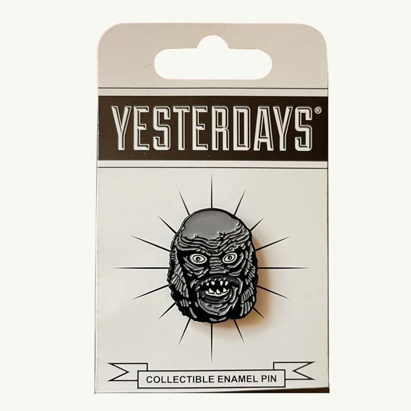The Creature from the Black Loggon is officially known as the Gill-man, though it’s also commonly known as the Creature. Yesterdays Enamel Creature Pin is a one inch black base enamel lapel pin with black rubber tieback with a favorite monster from the 1954 movie “Creature from the Black Lagoon. Wear, this pin on your lapel, hat, backpack or jacket or wherever! Trade pins with your friends or give to someone you are crushing on. Have fun but don’t eat them….they are not food!